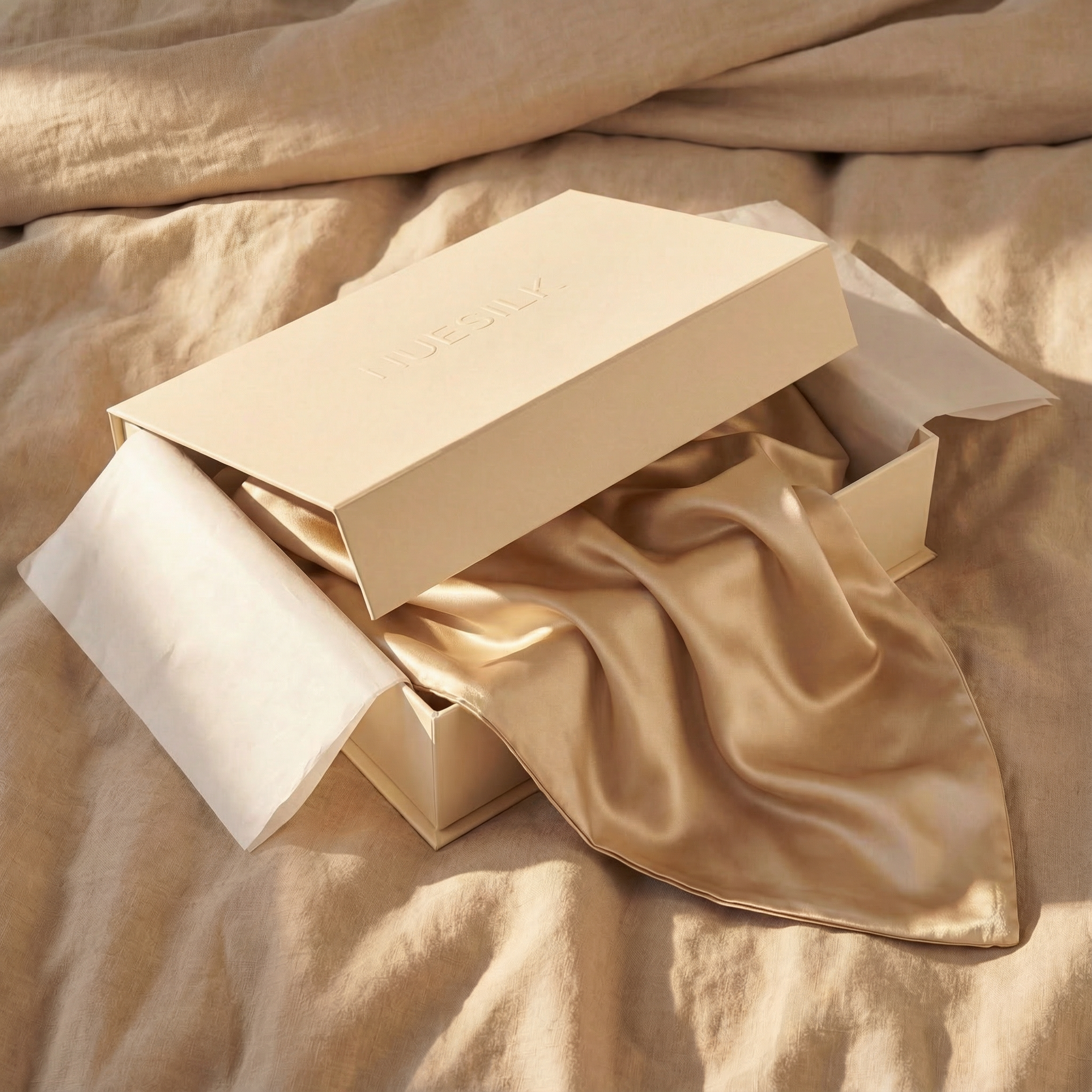 We believe the experience begins before the silk touches the skin. Each piece is folded with precision and housed in our rigid, embossed archive box. Wrapped in protective tissue, the presentation serves a dual purpose: to protect the fiber during transit and to offer a moment of deliberate calm upon opening. Designed to endure, it is a permanent home for your linens.